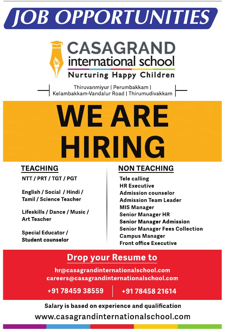 Casagrand International School Wanted Teaching & Non-Teaching Faculty