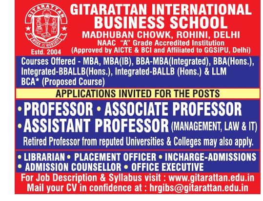 Gitarattan International Business School, Delhi – Faculty Job Openings