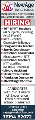 School Faculty Recruitment 2021 notification announced by NewAge World School, Bengaluru – Teachers and Non-Teaching Jobs. Eligible candidates may apply immediately.