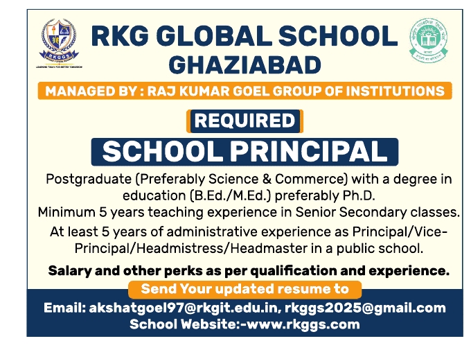 Faculty Recruitment 2025 job notification announced by RKG Global School, Ghaziabad, Uttar Pradesh for the 2025-2026 academic year. Eligible candidates may apply through Email.