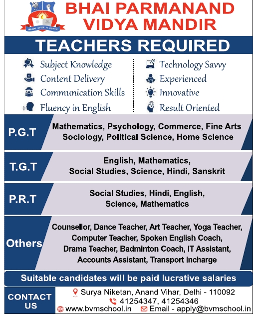 Hiring Organization: Bhai Parmanand Vidya Mandir, Anand Vihar