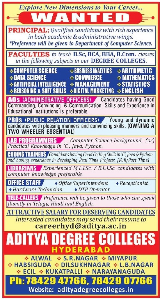 Email Address to Apply: careerhyd@aditya.ac.in