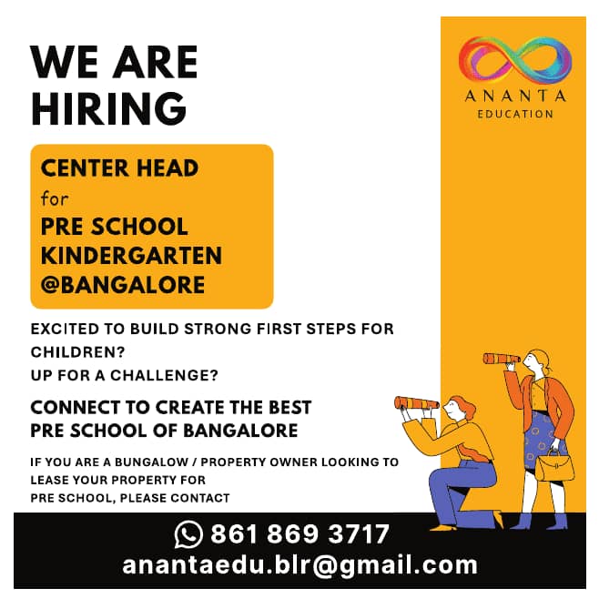 Academic JobJobs by LocationKarnatakaSchool Jobs Ananta Education, Bengaluru Wanted Center Head January 7, 2026 201 FacebookTwitterPinterestWhatsApp Reference: Advertisement dated on 7th January 2026