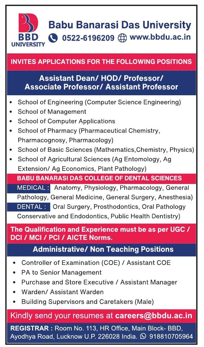 Email Address to Apply : careers@bbdu.ac.in