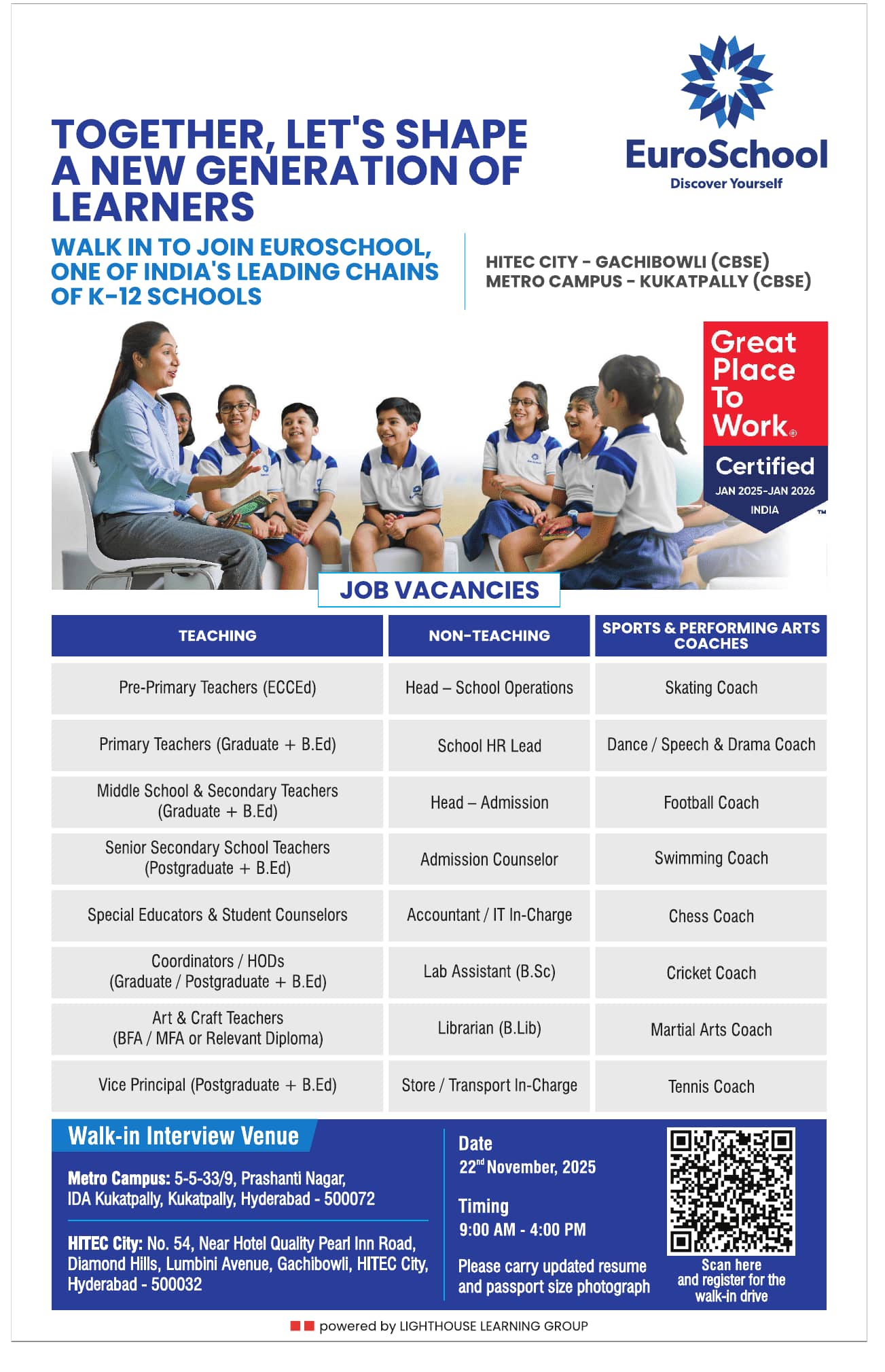 Hiring Organization: EuroSchool, Kukatpally & Gachibowli