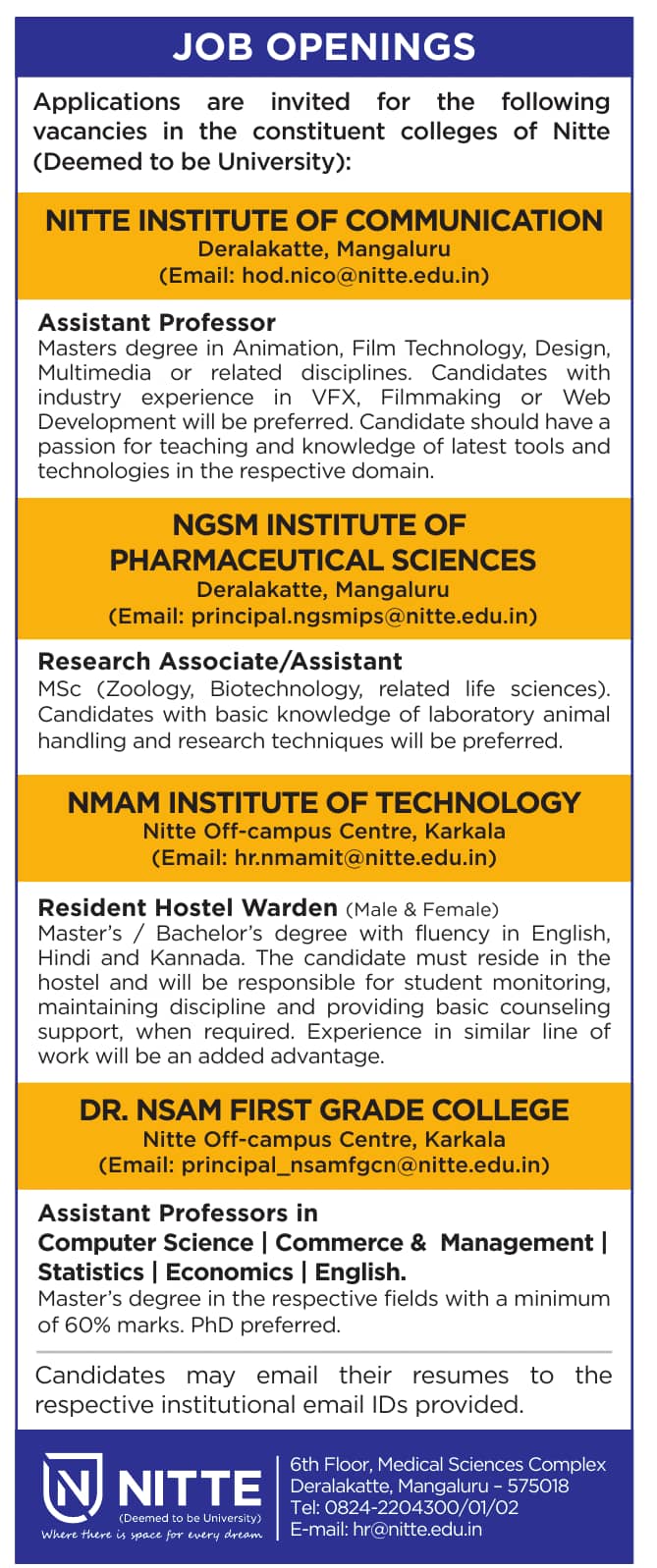 - NMAM INSTITUTE OF TECHNOLOGY Nitte Off-campus Centre, Karkala (Email: hr.nmamit@nitte.edu.in)
